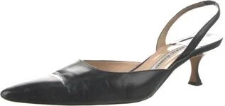 Manolo Blahnik Leather Slingback Pumps Blue Semi-Pointed Toes Includes Dust Bag Fit: This style typically runs narrow and a half size small. Unfortunately, due to restrictions, this item may not be eligible for shipping in all areas.