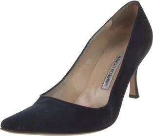 Manolo Blahnik Suede Pumps Blue Semi-Pointed Toes Fit: This style typically runs narrow and a half size small. Read more