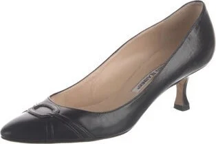 Manolo Blahnik Leather Pumps Blue Semi-Pointed Toes Fit: This style typically runs narrow and a half size small. Unfortunately, due to restrictions, this item may not be eligible for shipping in all a Read more