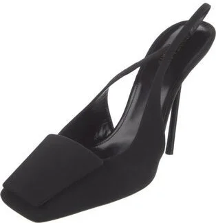 Saint Laurent Satin Slingback Pumps Black Square-Toes Designer Fit: Pumps by Saint Laurent typically run a half size small.