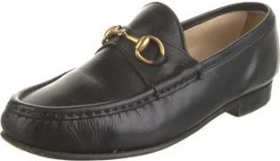 Gucci Leather Loafers Black Horsebit Accent Round-Toes Includes Box Designer Fit: Flats by Gucci typically run a half size small. Unfortunately, due to restrictions, this item may not be eligible for shipping in all areas.