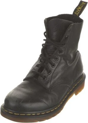Dr. Martens Leather Ankle Combat Boots Black Round-Toes Wrap-Around Straps & Lace-Up Closure at Uppers Unfortunately, due to restrictions, this item may not be eligible for shipping in all areas. Read more