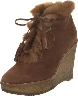 Yves Saint Laurent Suede Ankle Lace-Up Boots Brown Round-Toes Platform Wrap-Around Straps & Lace-Up Closure at Uppers Read more