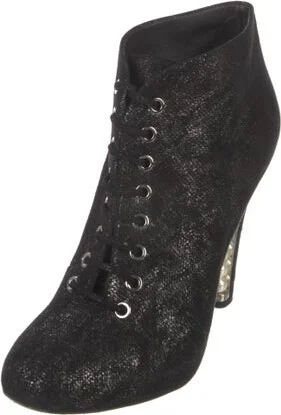 Chanel Suede Ankle Lace-Up Boots From the 2013 Collection by Karl Lagerfeld Black Interlocking CC Logo Round-Toes Platform Lace-Up Closure at Uppers Fit: This style typically runs a full size small. Read more
