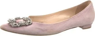 Manolo Blahnik Satin Flats Neutrals Semi-Pointed Toes with Crystal Embellishments Designer Fit: This style typically runs narrow and a half size small.