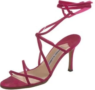 Manolo Blahnik Suede Sandals Pink Wrap-Around Straps & Tie Closures Fit: This style typically runs narrow and a half size small. Read more