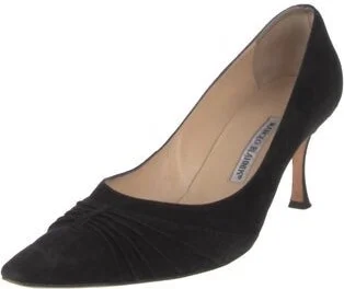 Manolo Blahnik Suede Pumps Black Semi-Pointed Toes Includes Box Fit: This style typically runs narrow and a half size small. Read more
