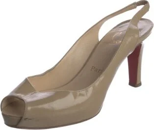 Christian Louboutin Patent Leather Slingback Sandals Neutrals Platform Designer Fit: This style typically runs a half size to a full size small. Read more