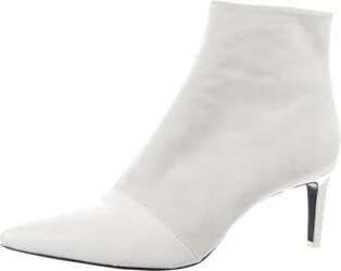 Rag & Bone Suede Ankle Boots Grey Leather Trim Pointed-Toes Exposed Zip Closure at Sides Includes Box Designer Fit: Boots by Rag & Bone typically run a half size small.
