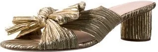 Loeffler Randall Slides Gold Pleated & Bow Accents Crossover Straps & Tie Closures
