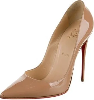 Christian Louboutin Patent Leather Pumps Neutrals Leather Trim Pointed-Toes Includes Box & Additional Heel Caps Designer Fit: This style typically runs a half size to a full size small. Read more