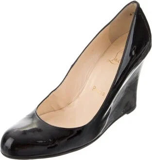 Christian Louboutin Patent Leather Pumps Black Round-Toes Designer Fit: This style typically runs a half size to a full size small.