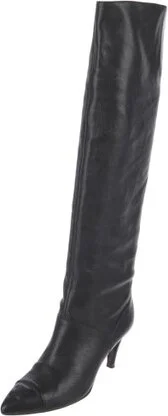 Chanel Leather Over-The-Knee Boots Black Interlocking CC Logo Pointed-Toes Fit: This style typically runs a full size small. Unfortunately, due to restrictions, this item may not be eligible for shipp Read more