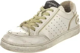 Chanel Leather Low Top Sneakers From the 2020 Collection by Virginie Viard White Interlocking CC Logo Round-Toes Lace-Up Closure at Uppers Designer Fit: This style typically runs narrow and a half siz Read more