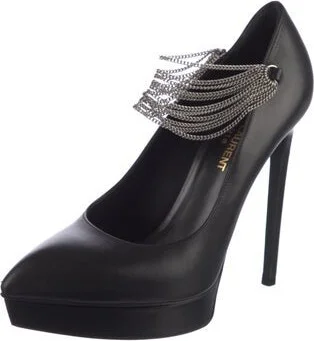 Saint Laurent Leather Pumps Black Semi-Pointed Toes with Chain-Link Accents Platform Multistrap Includes Box & Dust Bag Designer Fit: Pumps by Saint Laurent typically run a half size small. Unfortunat Read more