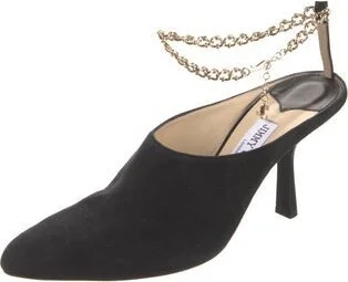 Jimmy Choo Suede Slingback Pumps Black Semi-Pointed Toes with Chain-Link Accents Wrap-Around Straps Fit: This style typically runs a half size small. Read more