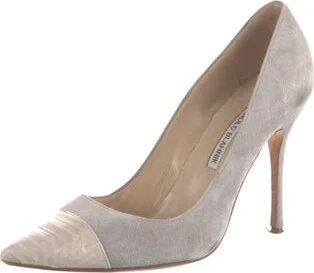 Manolo Blahnik Suede Pumps Grey Semi-Pointed Toes Fit: This style typically runs narrow and a half size small. Read more
