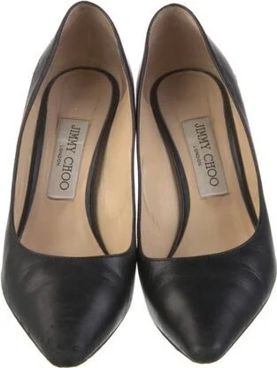 Jimmy Choo Leather Pumps Black Square-Toes Fit: This style typically runs a half size small. Unfortunately, due to restrictions, this item may not be eligible for shipping in all areas.