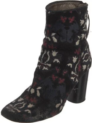 Isabel Marant Suede Ankle Boots Black Patterned Square-Toes with Embroidered Accent Zip Closures at Shafts Read more
