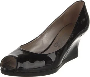 Salvatore Ferragamo Patent Leather Pumps Black Vara Bow Accent Grosgrain & Bow Accents Peep-Toes Includes Box Fit: This style typically runs a half size small. Read more