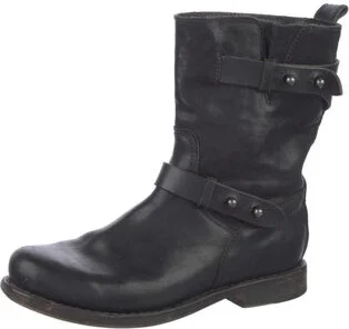 Rag & Bone Leather Mid-Calf Moto Boots Black Round-Toes Wrap-Around Straps & Peg-In-Hole Closure at Sides Designer Fit: Boots by Rag & Bone typically run a half size small. Unfortunately, due to restrictions, this item may not be eligible for shipping in all areas.