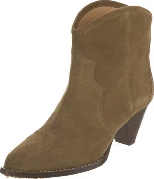 Isabel Marant Suede Ankle Western Boots Brown Semi-Pointed Toes