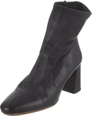 Loeffler Randall Leather Ankle Sock Boots Black Semi-Pointed Toes Concealed Zip Closure at Sides Unfortunately, due to restrictions, this item may not be eligible for shipping in all areas. Read more