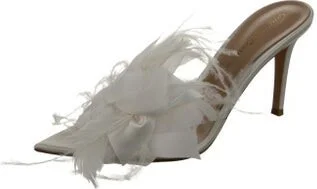Gianvito Rossi PVC Slides Neutrals Feather Trim & Satin Trim Includes Box & Dust Bag