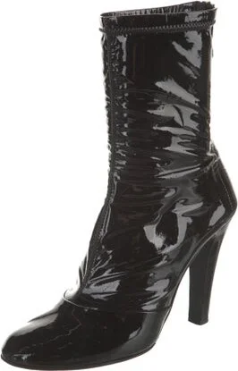 Chanel Patent Leather Ankle Lace-Up Boots Black Interlocking CC Logo Square-Toes Platform Zip Closures at Shafts Fit: This style typically runs a full size small. Read more