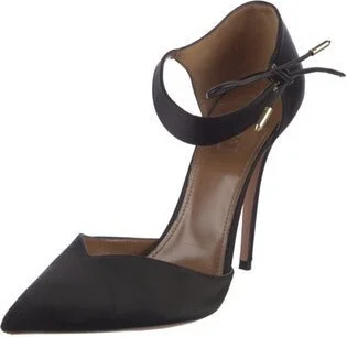 Aquazzura Satin D'Orsay Pumps Black Leather Trim Pointed-Toes with Leather Trim Embellishment Platform Tie Closures Read more