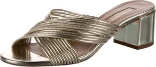 Aquazzura Leather Slides Gold Crossover Straps Unfortunately, due to restrictions, this item may not be eligible for shipping in all areas. Read more