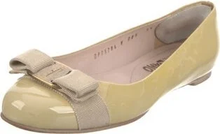 Ferragamo Patent Leather Flats Neutrals Neoprene Trim Round-Toes with Bow Accents Read more