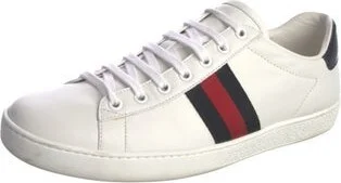 Gucci Leather Low Top Sneakers White Web Accent Round-Toes Lace-Up Closure at Uppers Designer Fit: Sneakers by Gucci typically run a half size large. Unfortunately, due to restrictions, this item may Read more