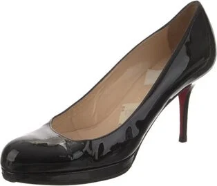 Christian Louboutin Patent Leather Pumps Black Round-Toes Platform Designer Fit: This style typically runs a half size to a full size small.