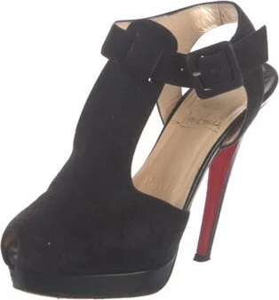 Christian Louboutin Suede T-Strap Pumps Black Round-Toes Platform Buckle Closure at Ankles Designer Fit: This style typically runs a half size to a full size small. Read more