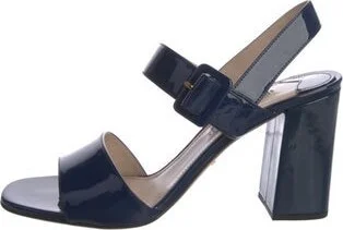 Prada Patent Leather Slingback Sandals Blue Straps & Buckle Closure at Ankles Designer Fit: Sandals by Prada typically run a half size small. Read more