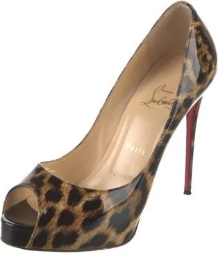 Christian Louboutin Patent Leather Pumps Brown Animal Print Peep-Toes Platform Designer Fit: This style typically runs a half size to a full size small.