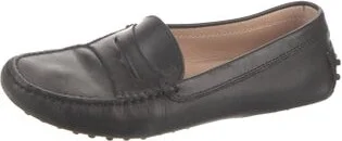 Tod's Leather Loafers Black Round-Toes Unfortunately, due to restrictions, this item may not be eligible for shipping in all areas. Read more