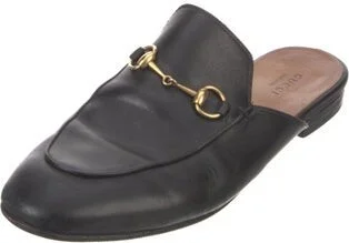 Gucci Leather Mules Black Horsebit Accent Semi-Pointed Toes Designer Fit: Flats by Gucci typically run a half size small. Unfortunately, due to restrictions, this item may not be eligible for shipping in all areas.