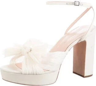 Loeffler Randall Sandals Neutrals Bow Accents Platform Wrap-Around Straps & Buckle Closure at Ankles