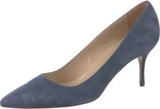 Manolo Blahnik Suede Pumps Blue Pointed-Toes Includes Box & Dust Bag Fit: This style typically runs narrow and a half size small. Read more
