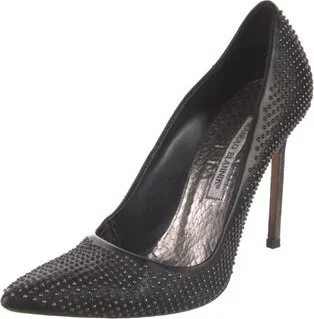 Manolo Blahnik Leather Pumps Black Pointed-Toes with Studded Accents Fit: This style typically runs narrow and a half size small. Unfortunately, due to restrictions, this item may not be eligible for Read more