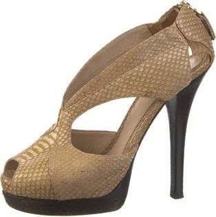 Fendi Leather Slingback Pumps Neutrals Colorblock Pattern Peep-Toes Platform Crossover Straps Fit: Pumps by Fendi typically run small, consider taking a half size up. Unfortunately, due to restrictions, this item may not be eligible for shipping in all areas.