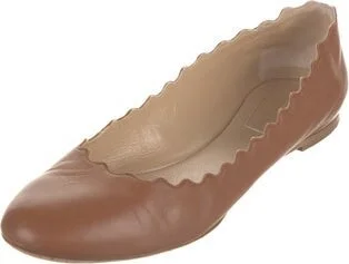 Chloé Leather Ballet Flats Brown Semi-Pointed Toes with Scalloped Accent Includes Box & Dust Bag Designer Fit: Flats by Chloé typically run a half size small. Unfortunately, due to restrictions, thi Read more