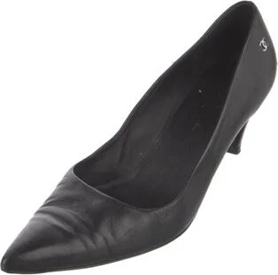 Chanel Leather Pumps Black Interlocking CC Logo Semi-Pointed Toes Designer Fit: This style typically runs narrow and a half size small. Unfortunately, due to restrictions, this item may not be eligibl Read more