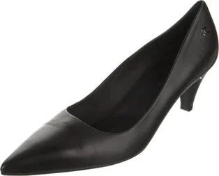 Chanel Leather Pumps Black Interlocking CC Logo Semi-Pointed Toes Designer Fit: This style typically runs narrow and a half size small. Unfortunately, due to restrictions, this item may not be eligibl Read more
