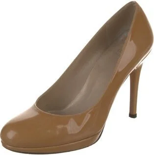 Stuart Weitzman Patent Leather Pumps Neutrals Round-Toes Platform Designer Fit: This designer typically runs true to size.