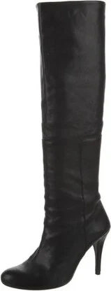 Stuart Weitzman Leather Over-The-Knee Boots Black Round-Toes Exposed Zip Closure at Sides Designer Fit: This designer typically runs true to size. Unfortunately, due to restrictions, this item may not Read more