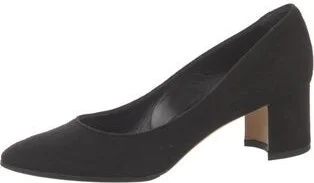 Manolo Blahnik Suede Pumps Black Semi-Pointed Toes Includes Box Fit: This style typically runs narrow and a half size small. Read more