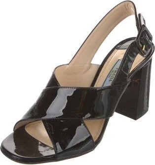 Prada Patent Leather Slingback Sandals Black Crossover Straps Includes Box & Dust Bag Designer Fit: Sandals by Prada typically run a half size small. Read more